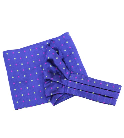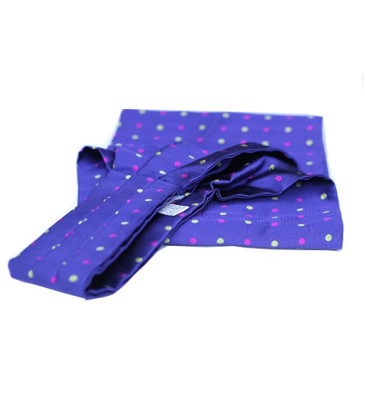 Tuck this purple, multi-colored dot silk ascot into a white collared shirt and leave peaking out of a camel-hued leather jacket or a grey blazer on your weekend stroll through the neighborhood or a Moto cruise.