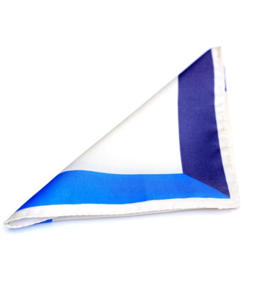 Experience the four beautiful tones of blue in one exquisite pocket square. Wear this CHARLES OWO accessory with a dark, charcoal colored blazer and a white shirt.