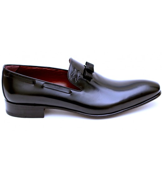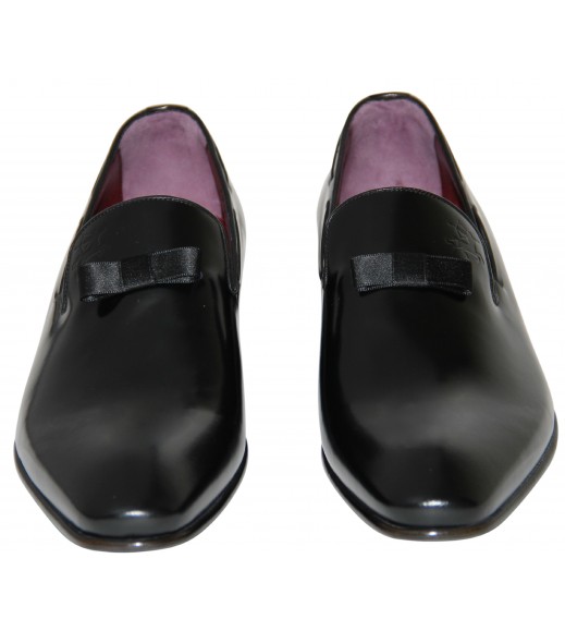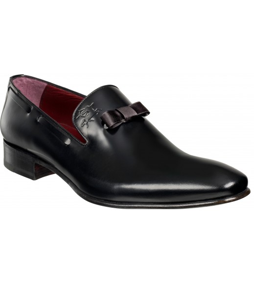 This bow-tie pair meticulously sewn by hand from pristine black leather upper has a handsomely raffish quality that other styles can't quite muster, but be assured that the flawless finish keeps the effect sophisticated. Wear them casual with a pair of jeans or dress it up with a sleek two-piece suit.