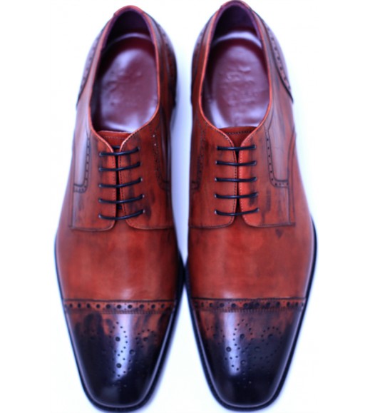 You can never go wrong with a classic brown Derby shoe for versatility. This magnificent piece is constructed by hand in Italy using calfskin leather and has a burnished finish using the most time-honoured techniques, and provides just the right level of detail.