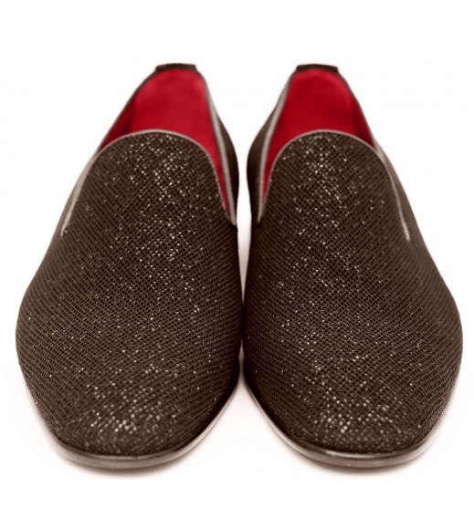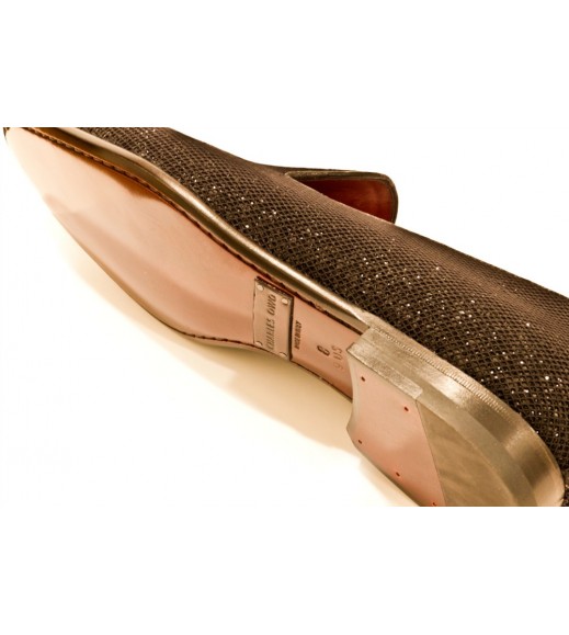 This elegant slippers made with Extra glitter fabric upper and supple leather is perfect for a sophisticated society events. The pair cuts an assured silhouette which won't fail to make a debonair impression.